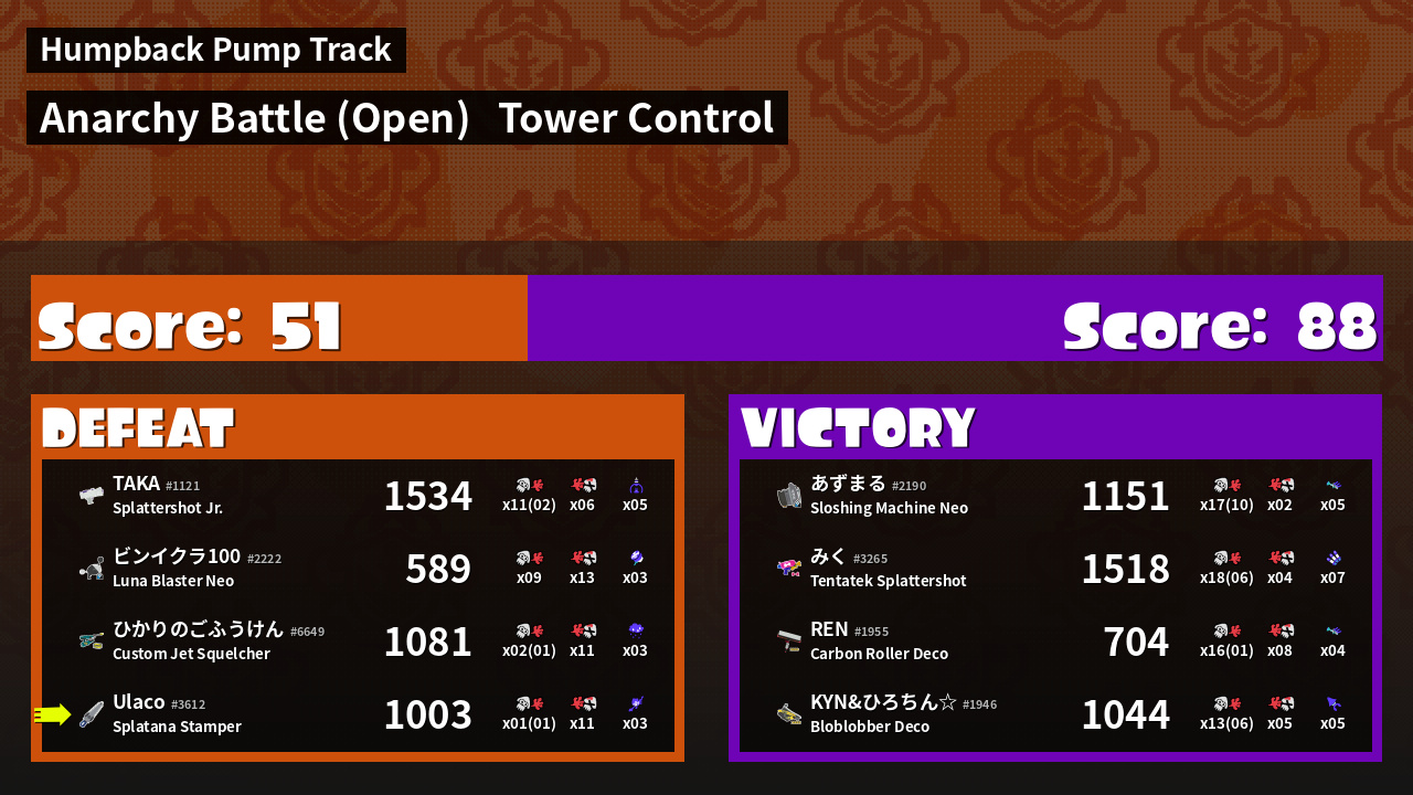 | Mode | Tower Control - Anarchy Battle (Open) | ||