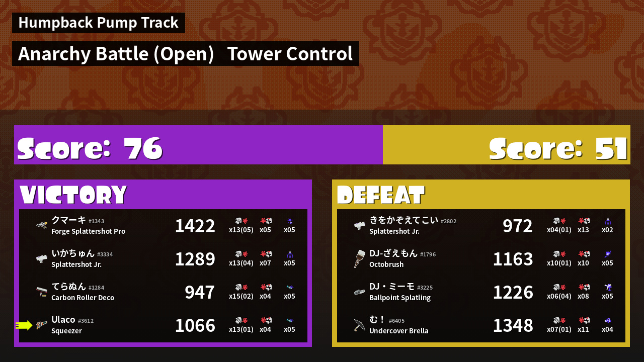 | Mode | Tower Control - Anarchy Battle (Open) | ||