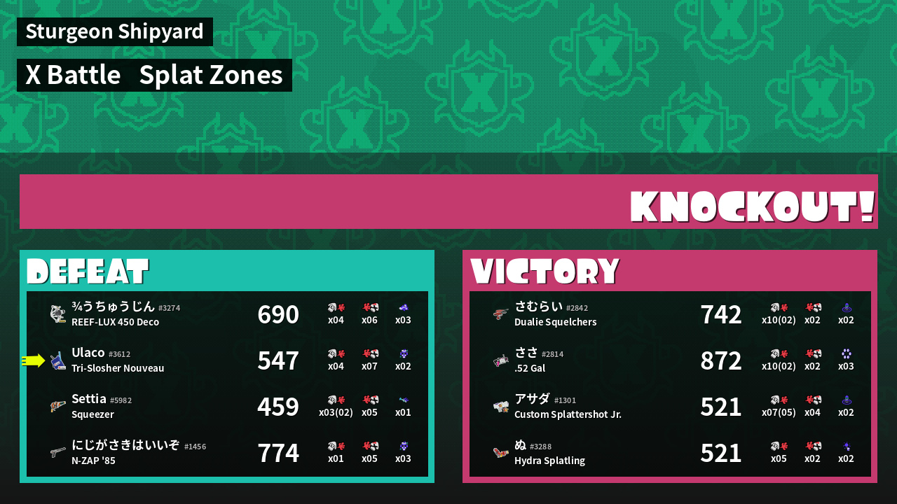 | Medals | #1 Overall Splatter #1 Splat Zone Guard #1 Super Jump Spot | ||