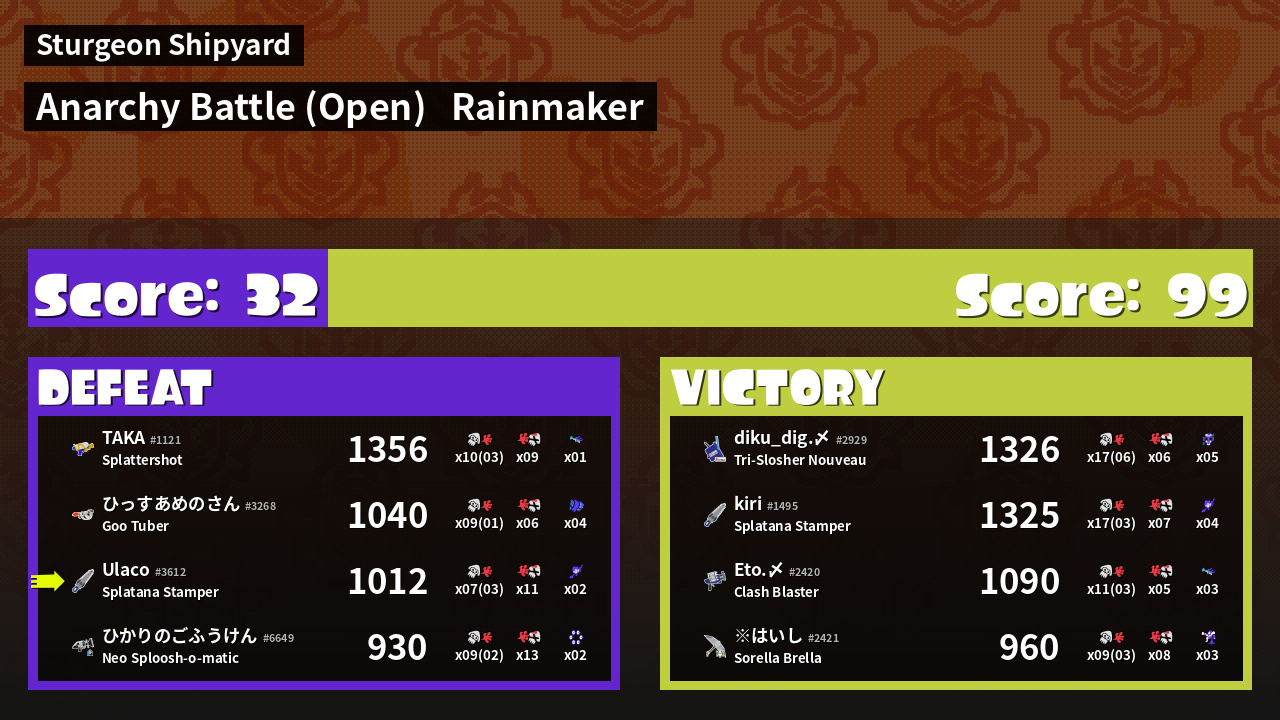 | Mode | Rainmaker - Anarchy Battle (Open) | ||