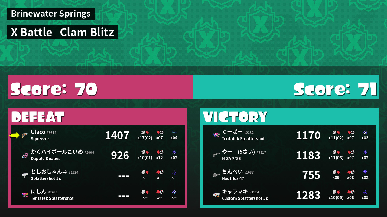 | Mode | Clam Blitz - X Battle | ||