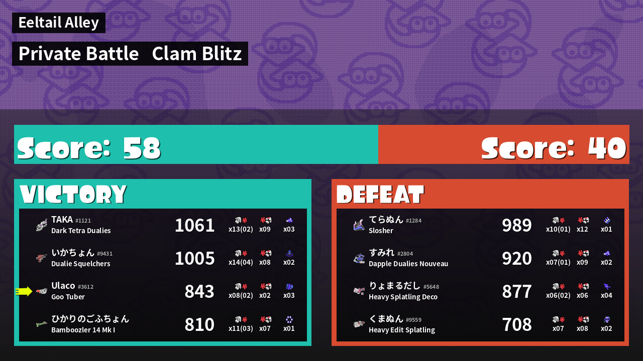 | Mode | Clam Blitz - Private Battle | ||