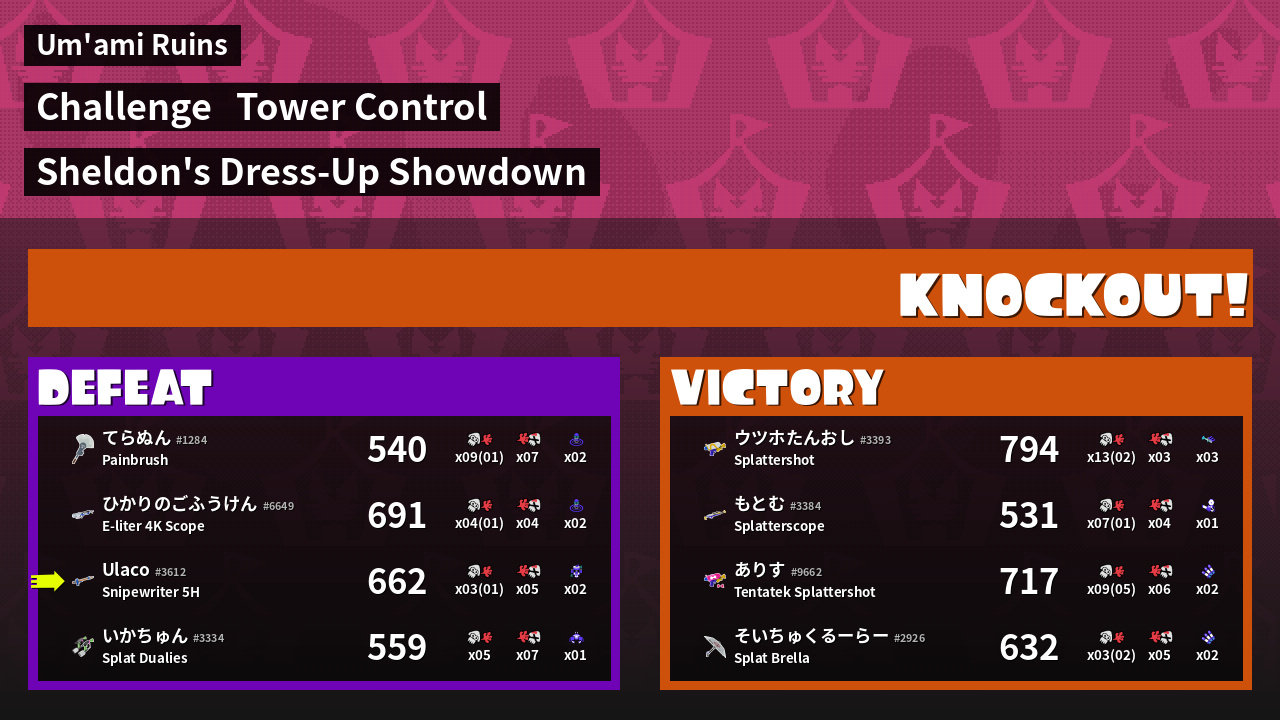 | Medals | #1 Super Jump Spot #1 Splat Assister #1 Ink Consumer | ||