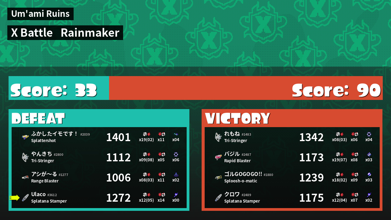 | Medals | #2 Overall Splatter #2 Turf Inker #2 Enemy Splatter | ||