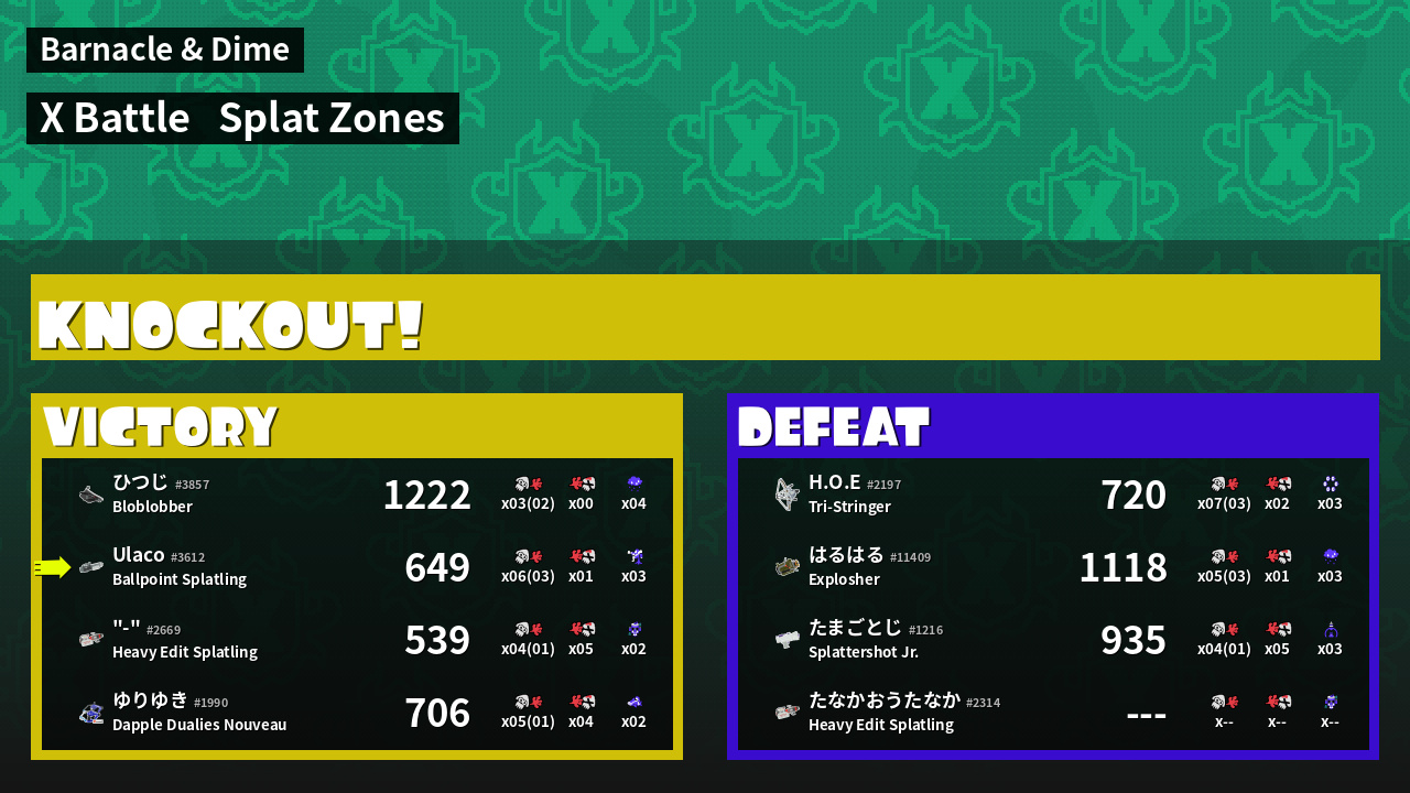 | Medals | #1 Overall Splatter #1 Splat Assister #1 Damage Taker | ||