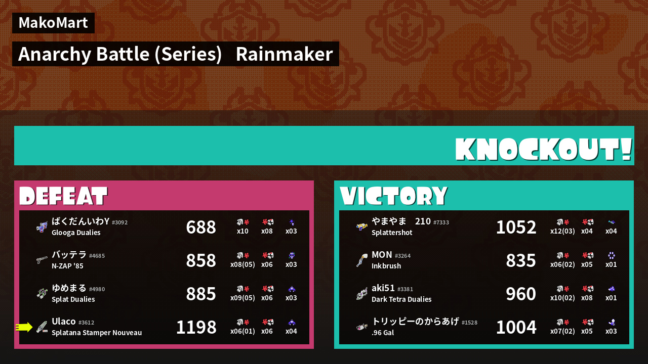 | Mode | Rainmaker - Anarchy Battle (Series) | ||