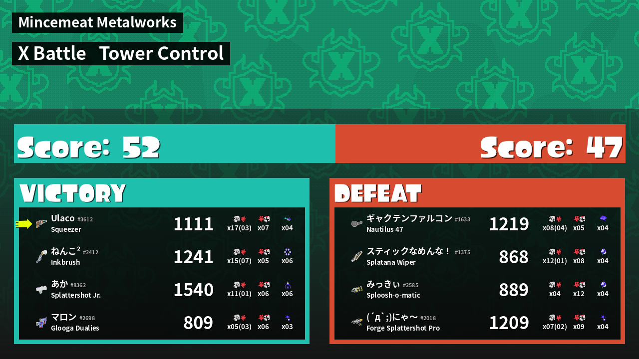 | Mode | Tower Control - X Battle | ||
