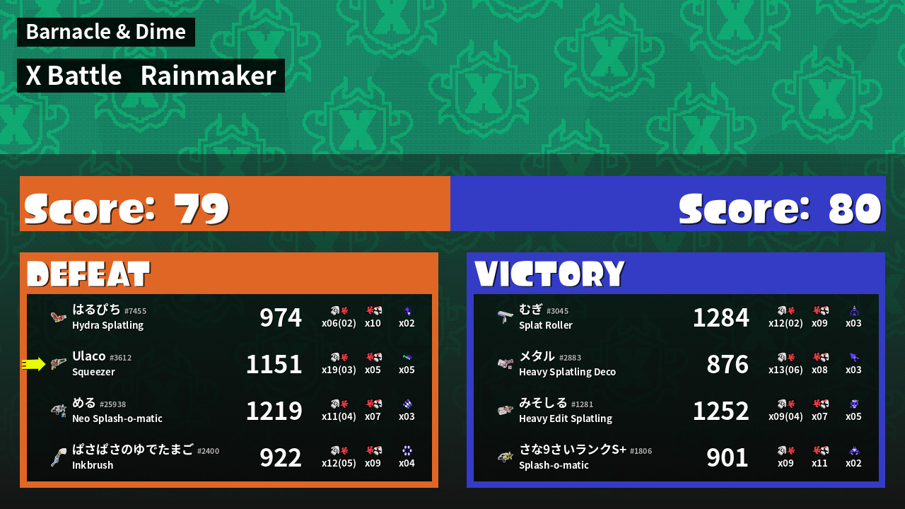 | Medals | #1 Overall Splatter #1 Enemy Splatter #1 Trizooka User | ||