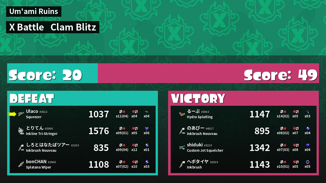 | Mode | Clam Blitz - X Battle | ||
