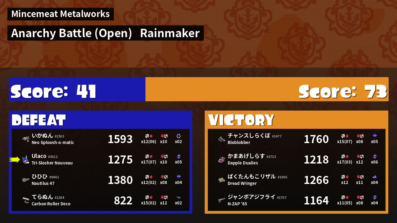 | Mode | Rainmaker - Anarchy Battle (Open) | ||
