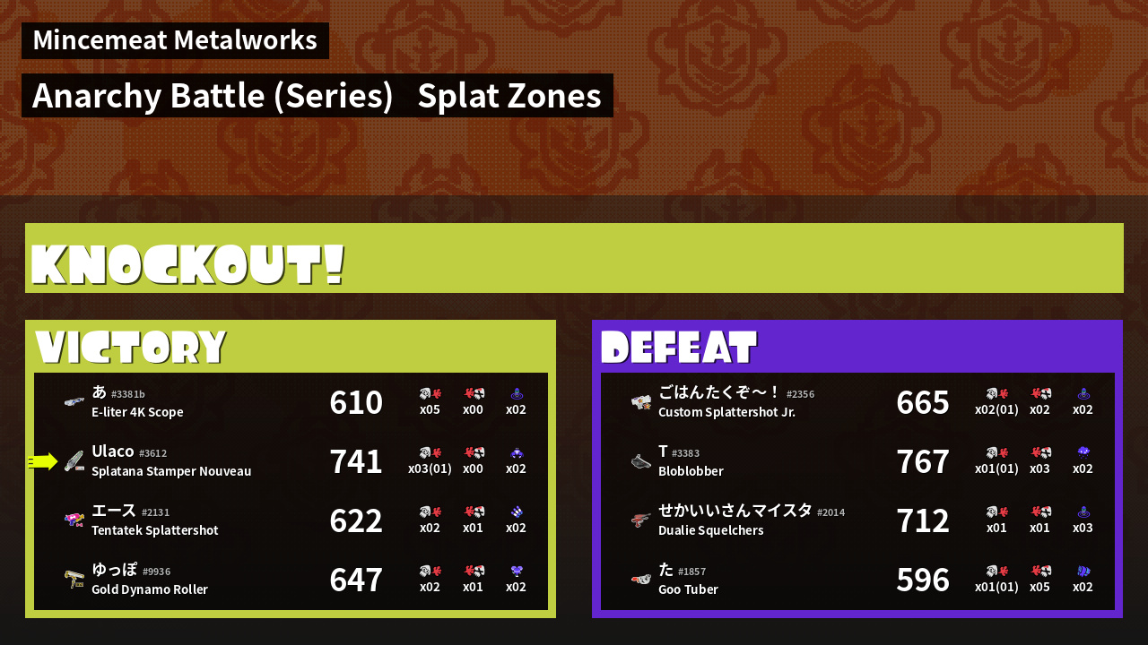 | Mode | Splat Zones - Anarchy Battle (Series) | ||