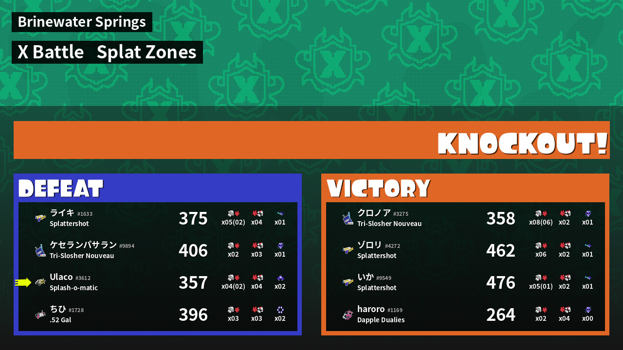 | Medals | #1 Splat Assister #1 Ink Consumer #2 Overall Splatter | ||