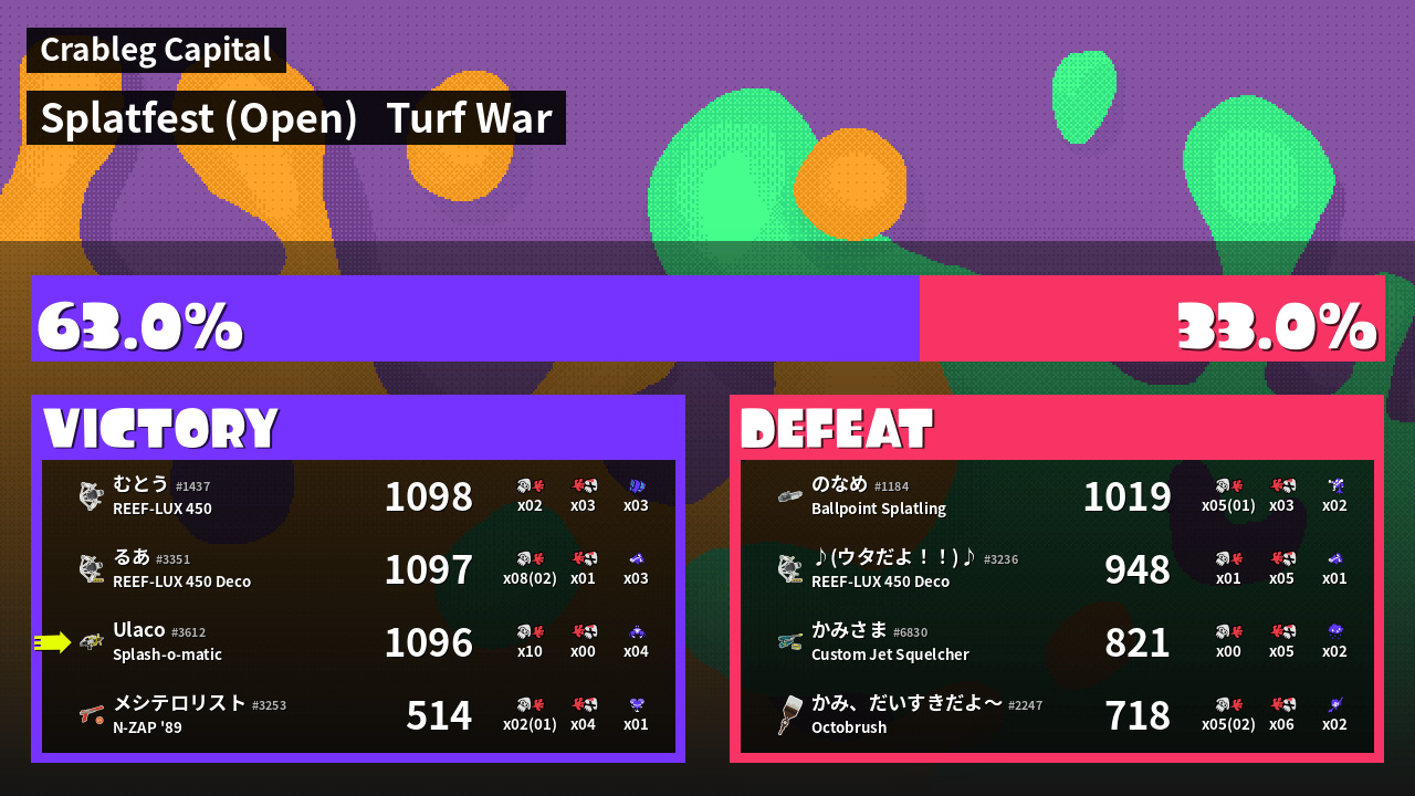 | Mode | Turf War - Splatfest (Open) | ||
