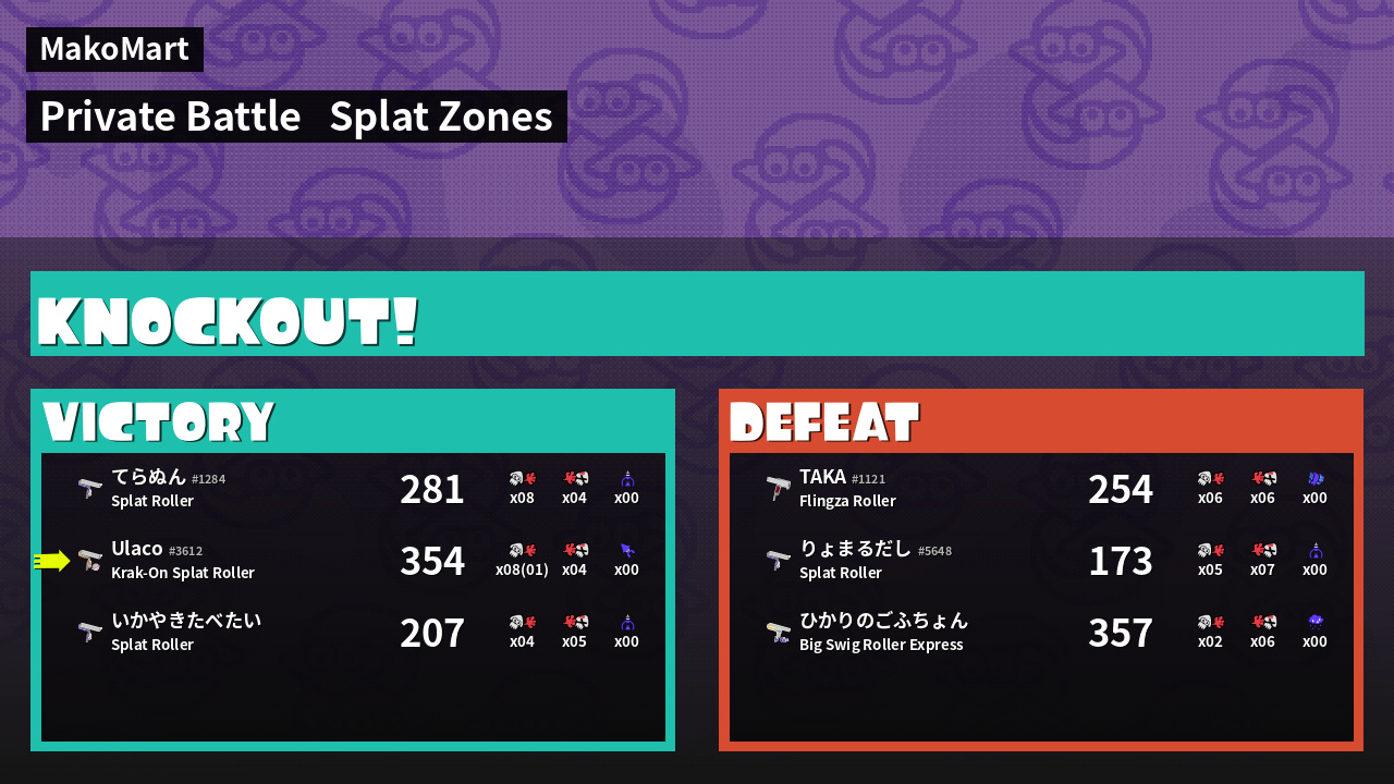 | Mode | Splat Zones - Private Battle | ||