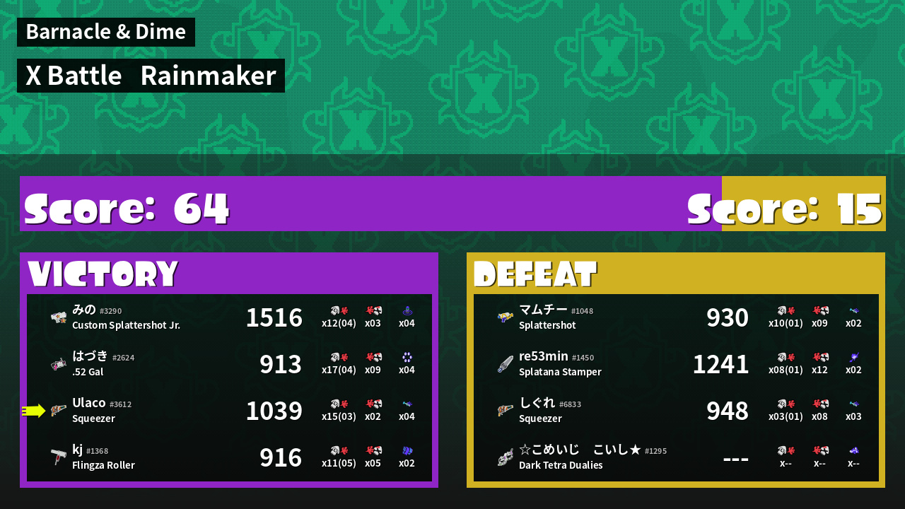 | Mode | Rainmaker - X Battle | ||