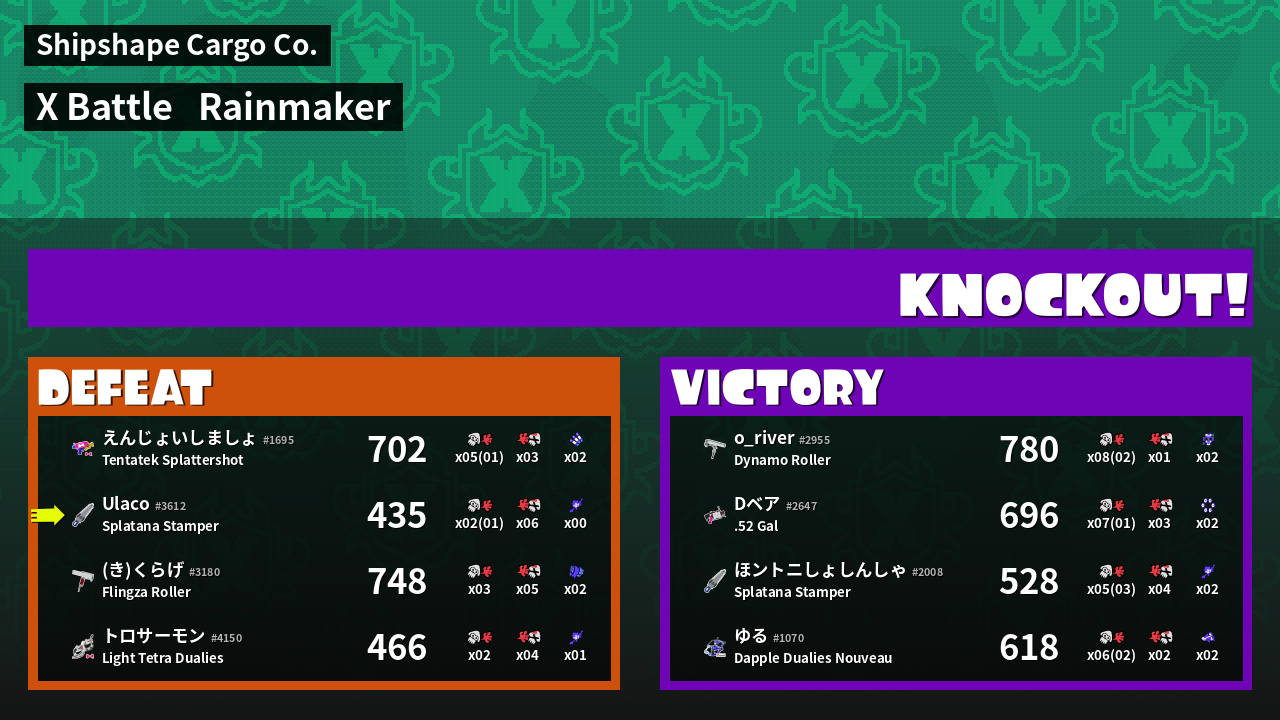 | Weapon | Splatana Stamper ( Burst Bomb / Zipcaster) | ||