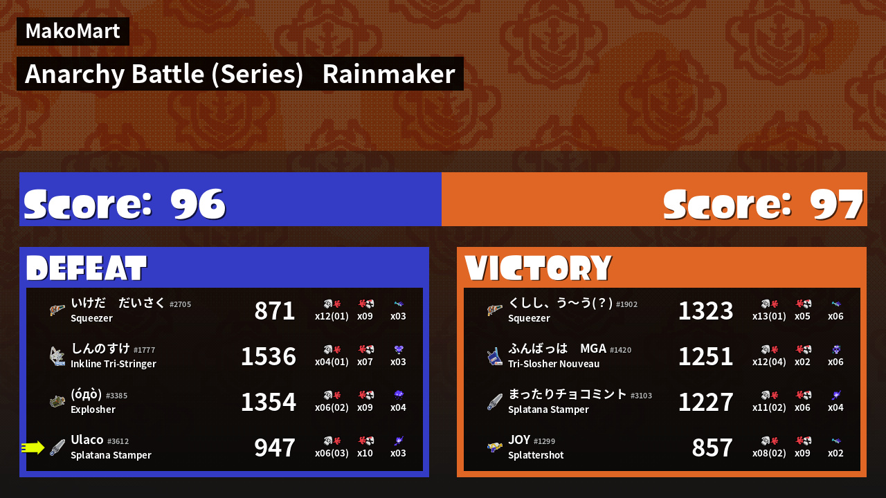 | Mode | Rainmaker - Anarchy Battle (Series) | ||