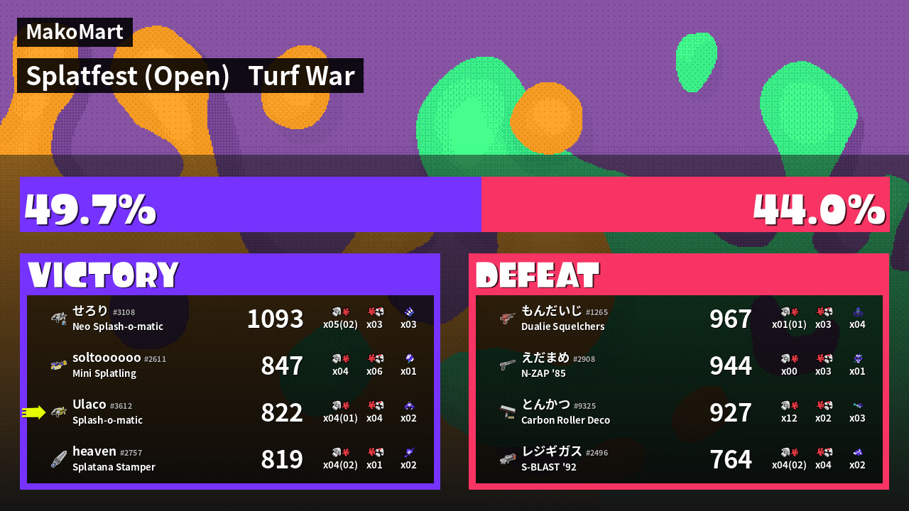 | Medals | #1 Base Defender #2 Overall Splatter #2 Enemy Splatter | ||