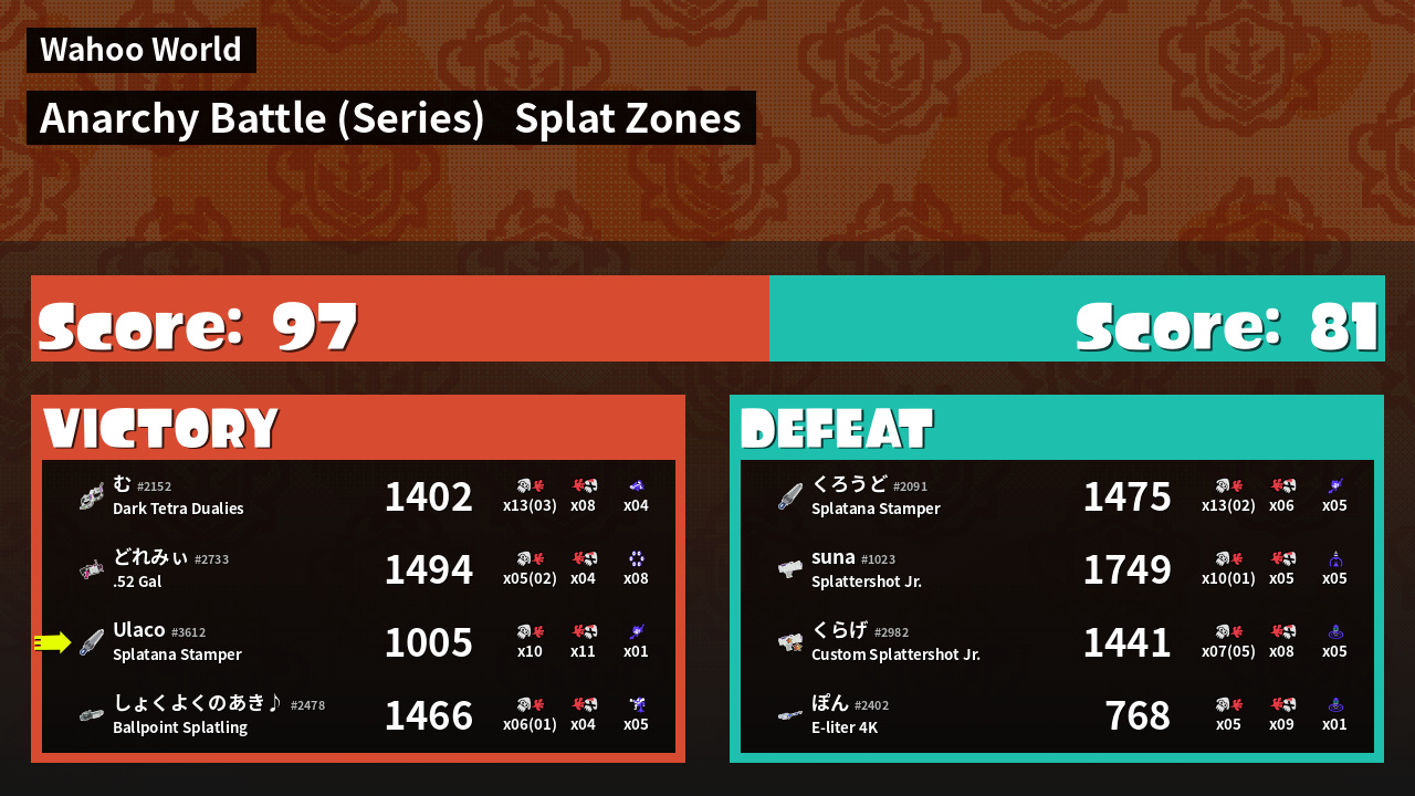 | Mode | Splat Zones - Anarchy Battle (Series) | ||