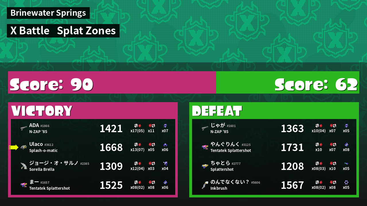 | Medals | #1 Turf Inker #1 Splat Assister #1 Ground Traveler | ||