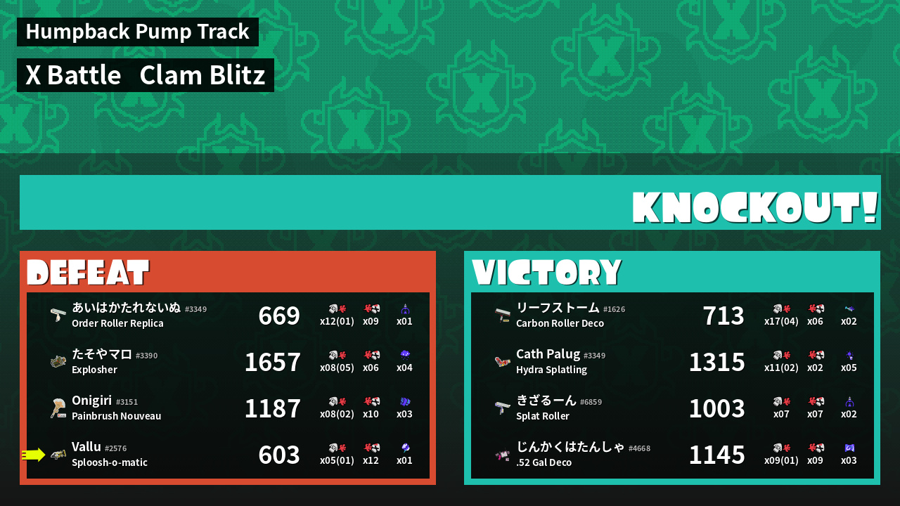 | Weapon | Sploosh-o-matic ( Curling Bomb / Ultra Stamp) | ||