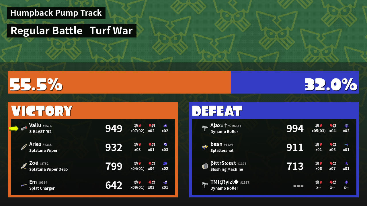 | Medals | #1 Turf Inker #1 Popular Target #1 Splat Assister | ||