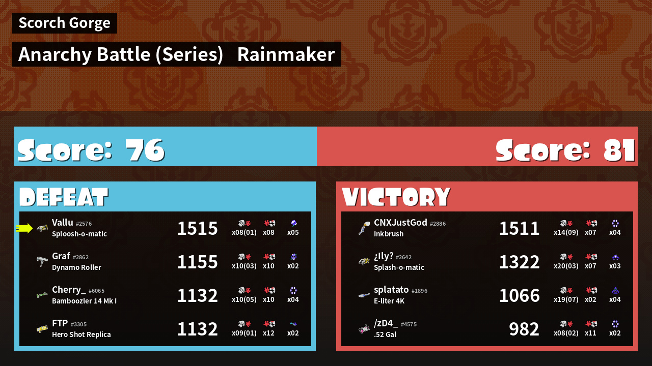 | Mode | Rainmaker - Anarchy Battle (Series) | ||