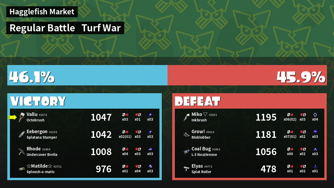 | Late-Night Representative Eebergon #3239 |  Splatana Stamper     | 1,042 | 1 + 1 | 3 | 0.33 |  3 | |