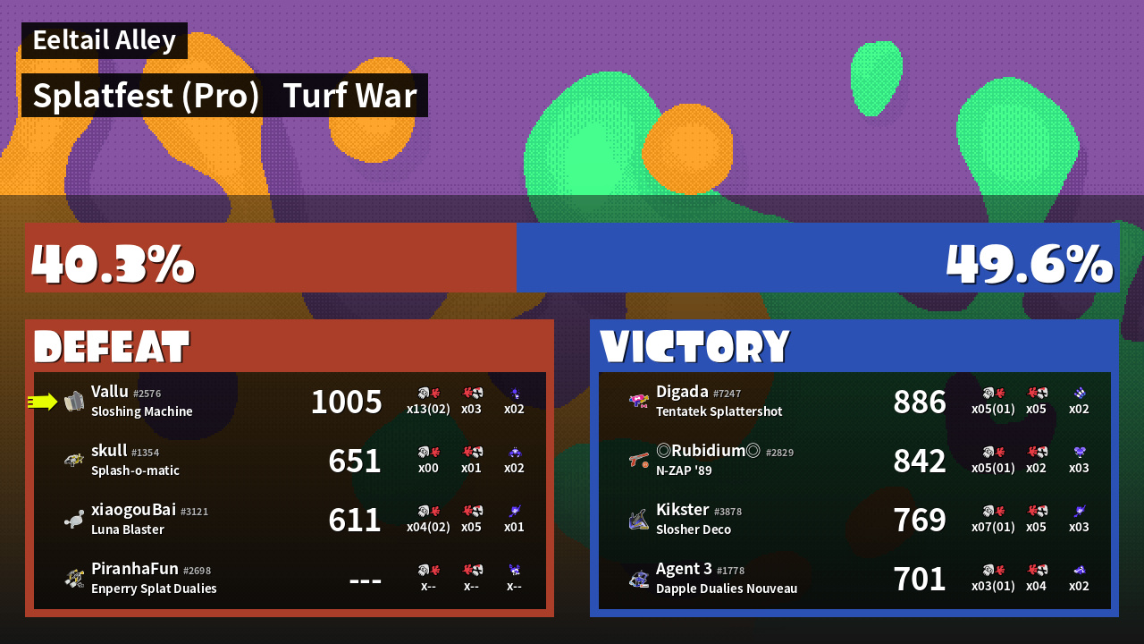 | Mode | Turf War - Splatfest (Pro) | ||