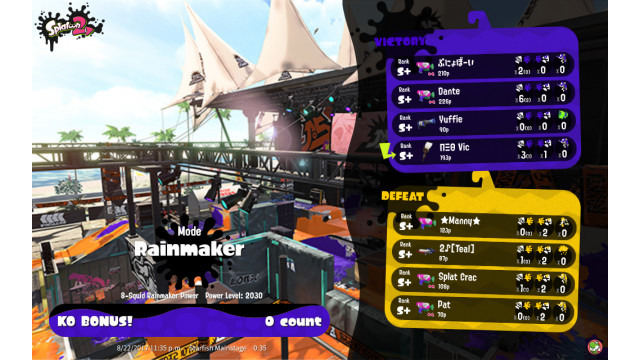 | Name | Weapon | Level | Rank | Inked | k+a/sp | k/d |
