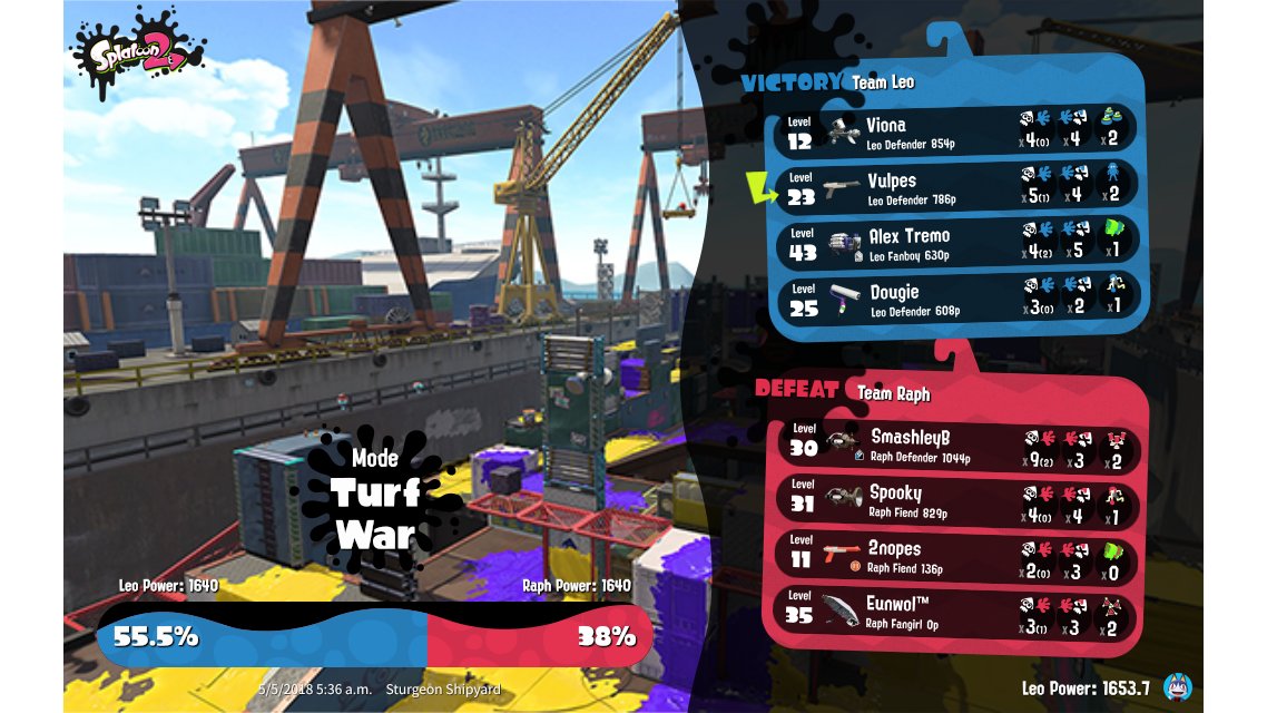 | Splatfest Title | Leo Defender 35 → Leo Defender 41 | |||||||||||||||||||||||||||||||||||||