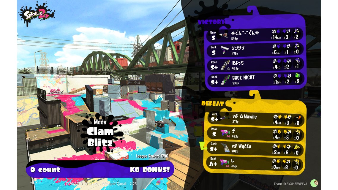 | Mode | Clam Blitz - League Battle (Twin) | ||||||||||||||||||||||||||||