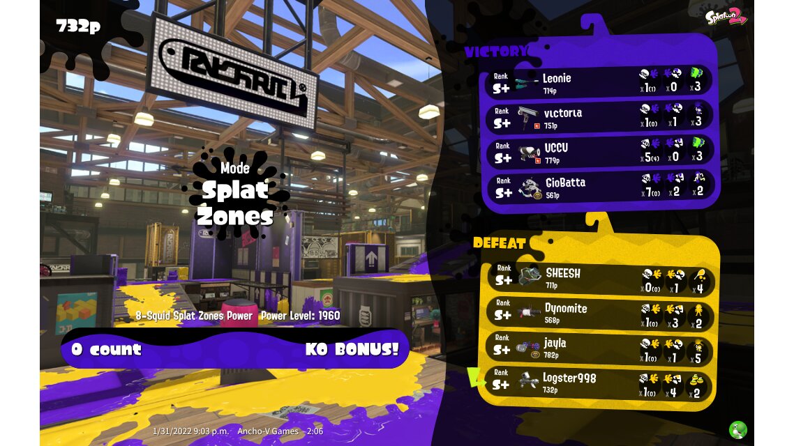 | Mode | Splat Zones - Ranked Battle | ||||||||||||||||||||||||||||||||||||||||||||||