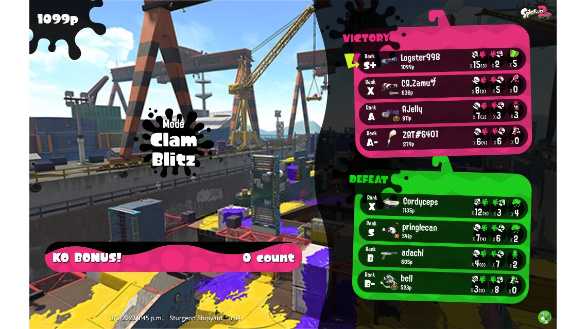 | Mode | Clam Blitz - Private Battle | ||||||||||||||||||||||||||||||||||||||||