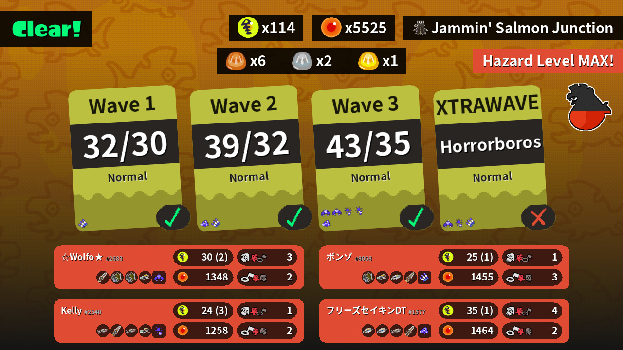 | Weapons | Grizzco Splatana Grizzco Slosher Grizzco Slosher Grizzco Blaster | Grizzco Brella Grizzco Brella Grizzco Charger Grizzco Splatana | Grizzco Slosher Grizzco Blaster Grizzco Brella Grizzco Splatana | Grizzco Charger Grizzco Splatana Grizzco Charger Grizzco Blaster |