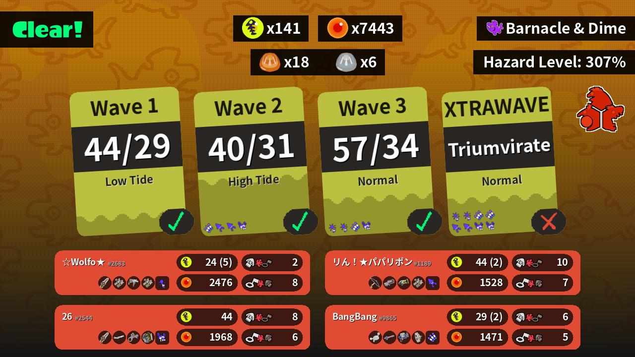 | Weapons | Grizzco Splatana Grizzco Dualies Grizzco Roller Grizzco Dualies | Grizzco Splatana Classic Squiffer Aerospray MG Grizzco Slosher | Undercover Brella S-BLAST '92 Sploosh-o-matic Grizzco Dualies | Luna Blaster Snipewriter 5H Clash Blaster Grizzco Stringer |