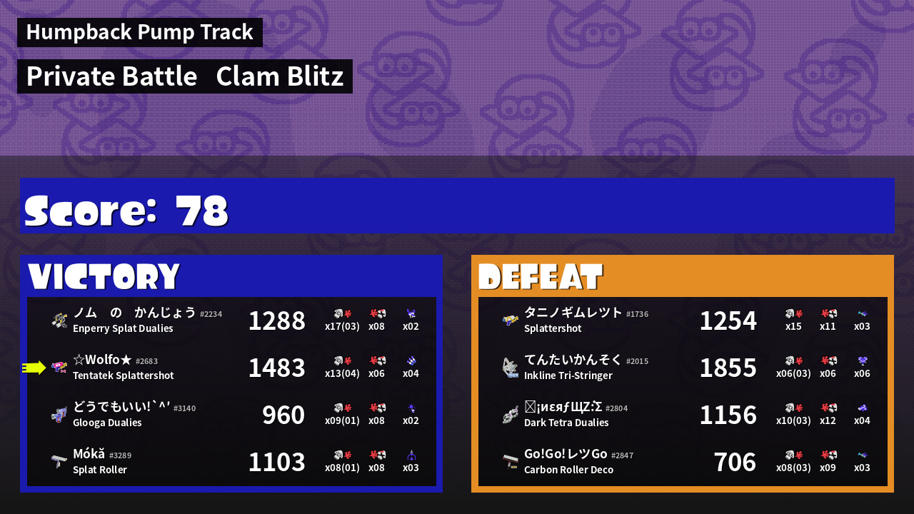| Weapon | Tentatek Splattershot ( Splat Bomb / Triple Inkstrike) | ||