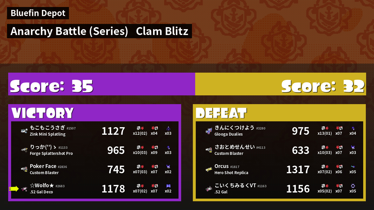 | Mode | Clam Blitz - Anarchy Battle (Series) | ||