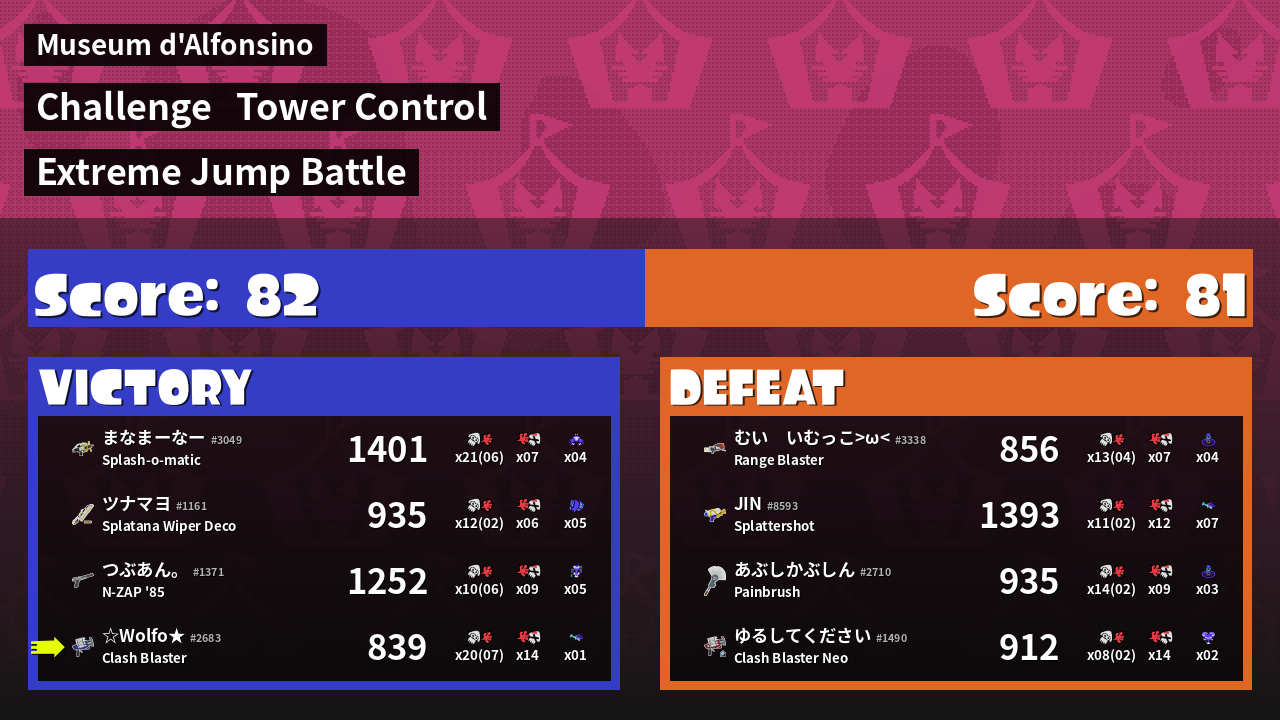 | Medals | #1 Splat Assister #1 Tower Stopper #1 Ink Consumer | ||