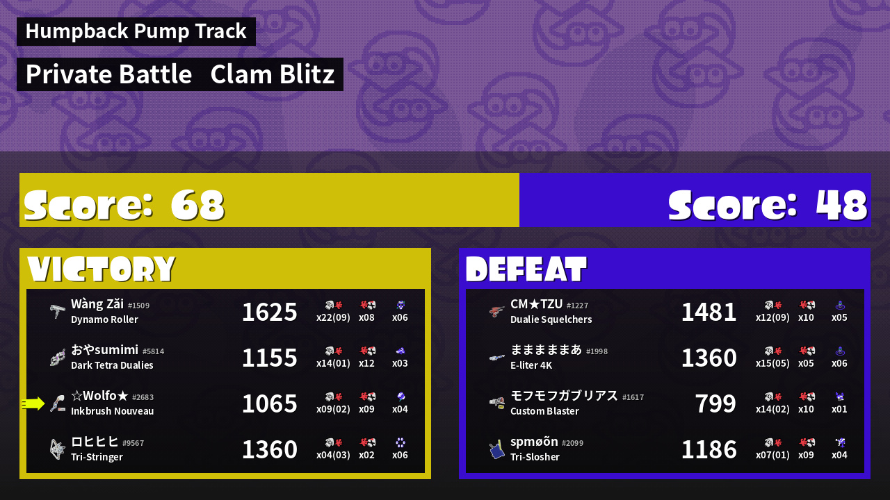 | Mode | Clam Blitz - Private Battle | ||