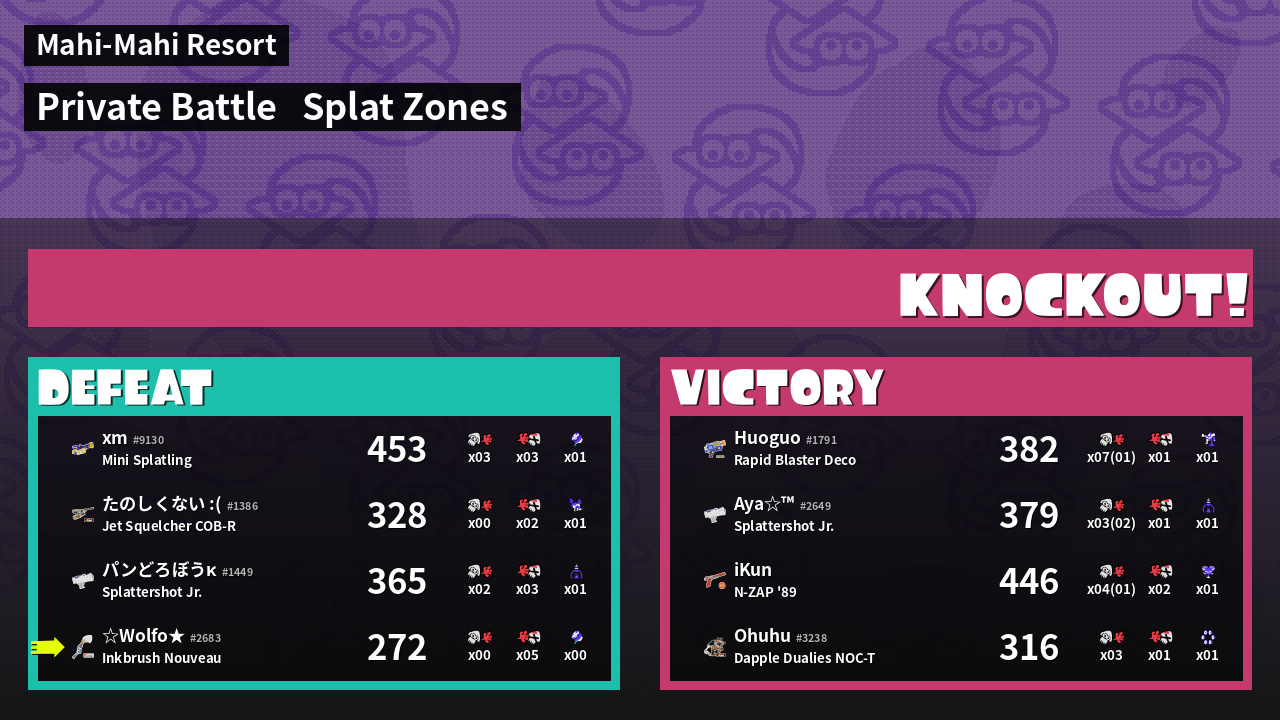 | Mode | Splat Zones - Private Battle | ||