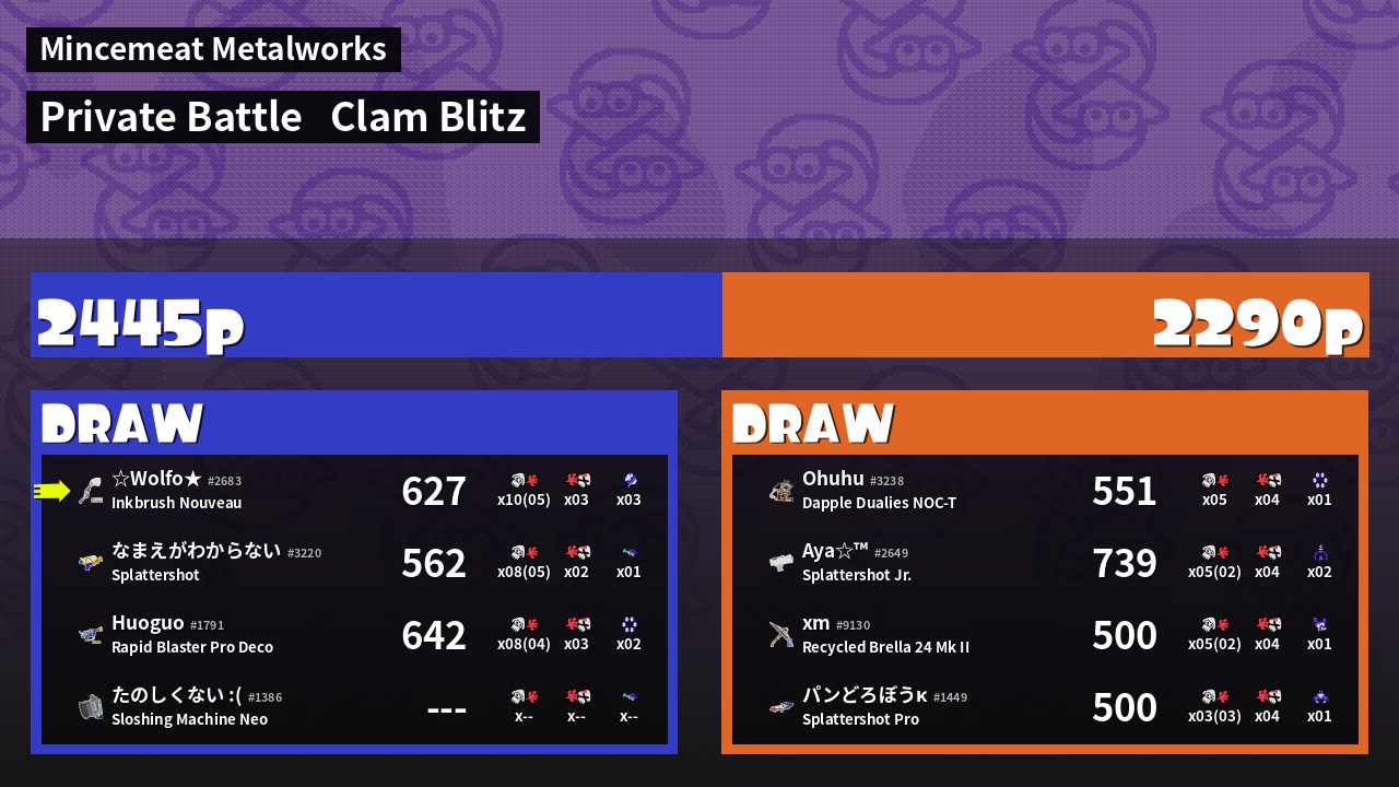 | Mode | Clam Blitz - Private Battle | ||