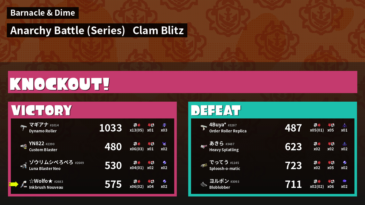 | Mode | Clam Blitz - Anarchy Battle (Series) | ||