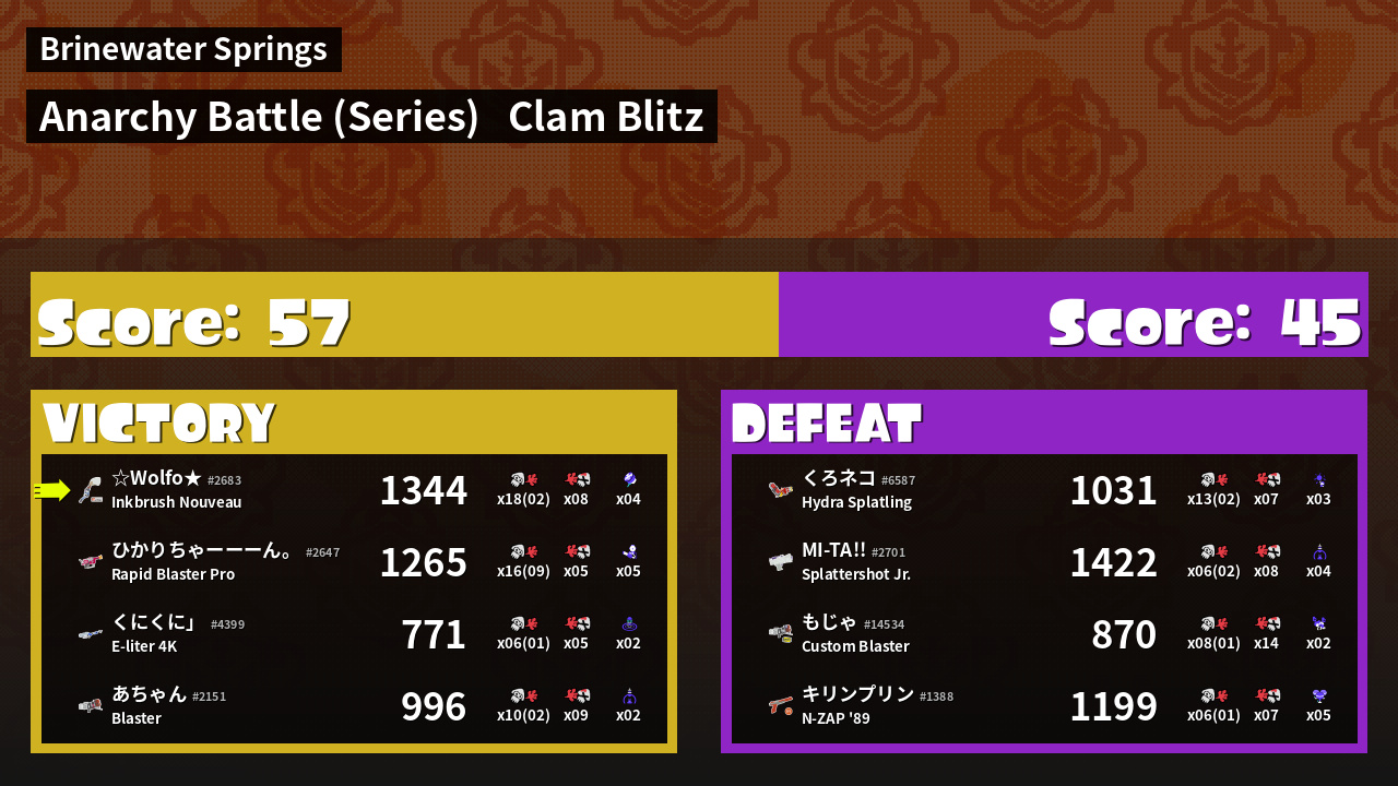 | Mode | Clam Blitz - Anarchy Battle (Series) | ||