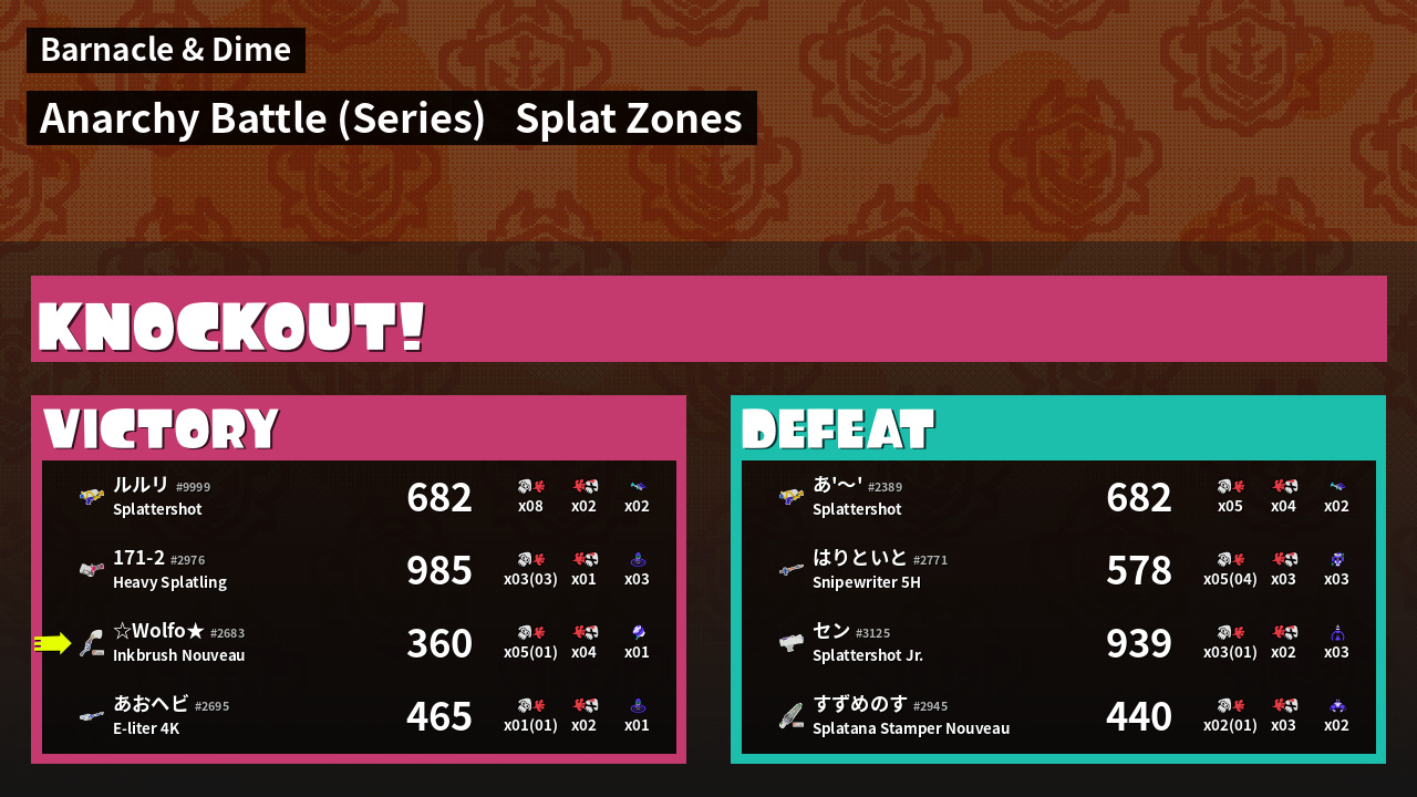 | Mode | Splat Zones - Anarchy Battle (Series) | ||
