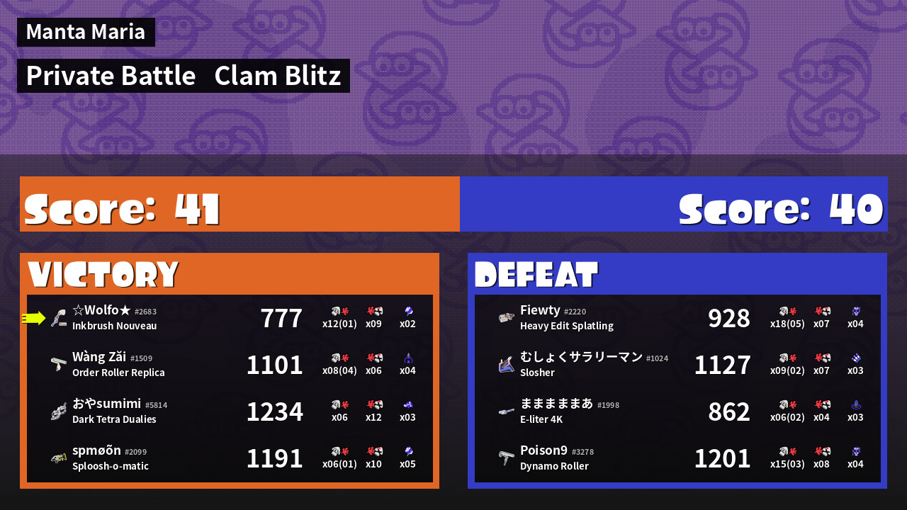 | Mode | Clam Blitz - Private Battle | ||