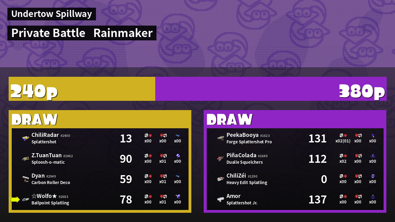 | Weapon | Ballpoint Splatling ( Fizzy Bomb / Inkjet) | ||