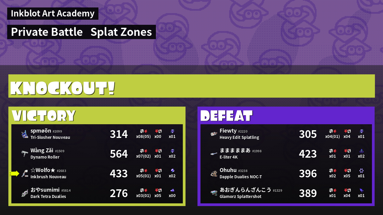 | Mode | Splat Zones - Private Battle | ||
