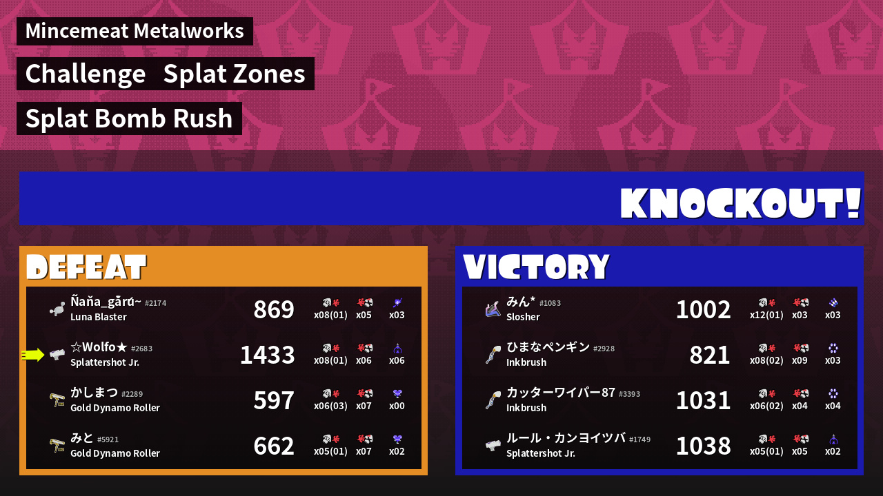 | Challenge | Splat Bomb Rush Let the Splat Bombs fly in this free-for-all! | ||
