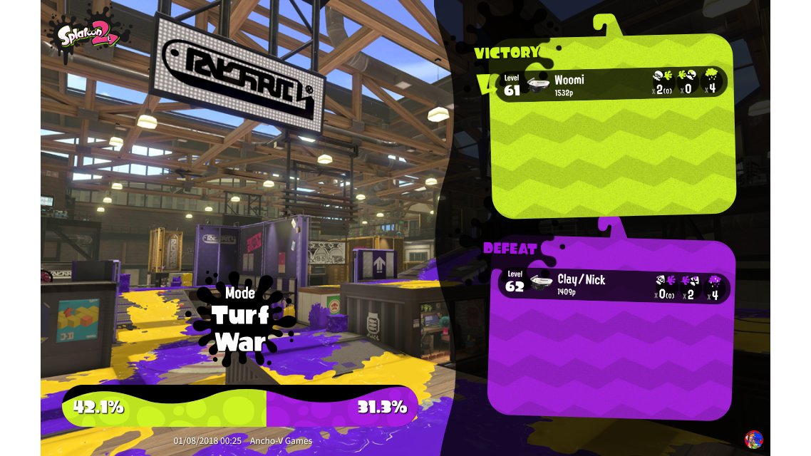 | Mode | Turf War - Private Battle | |||||||||||||||||||||||||||||||||||||